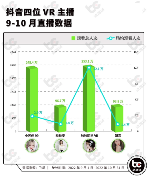 另一方面,站在抖音直播的角度来看,在各大直播平台押宝元宇宙的当下,虚拟偶像、虚拟主播涌现,这些内容在普通的直播场景内发挥有限, 但在VR直播里能更好地展现优势。